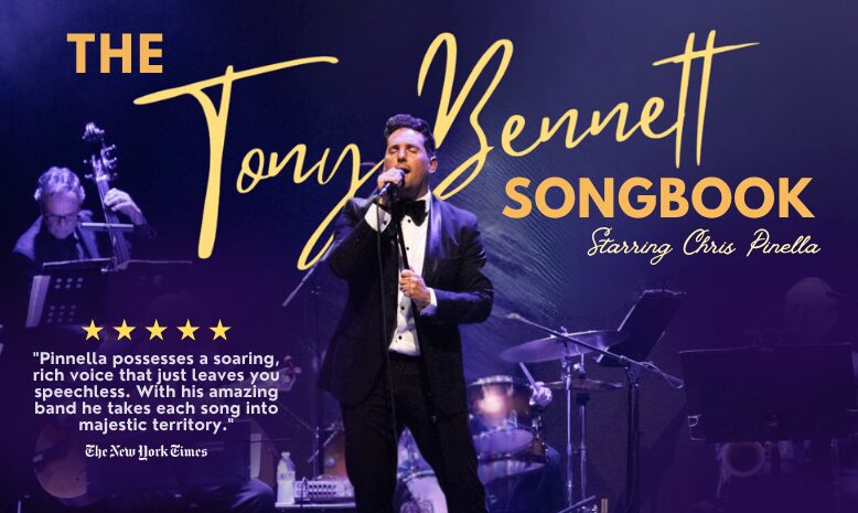 Join powerhouse vocalist Chris Pinnella for an evening of music honoring the legendary Tony Bennett through a thoughtfully curated celebration of his most iconic songs! With a soaring, rich voice and classic stage presence, Chris Pinnella brings both reverence and vitality to Bennett’s catalog, balancing swinging up-tempo numbers with heartfelt ballads, creating a dynamic and engaging arc that resonates across generations. Rather than imitation, Pinnella channels the spirit of Bennett, his optimism, warmth, and musical sophistication, making this a fresh yet timeless concert experience.